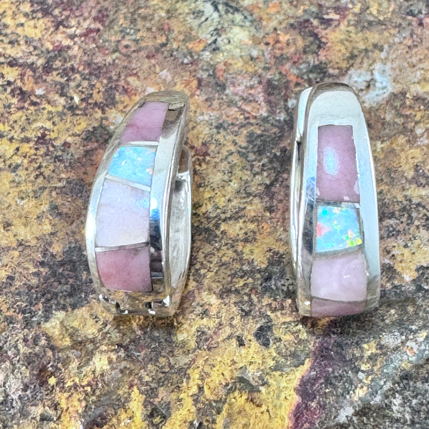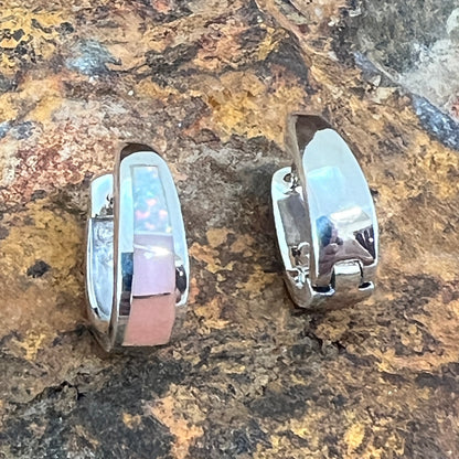 David Rosales Make Me Blush Inlaid Sterling Silver Earrings Huggie