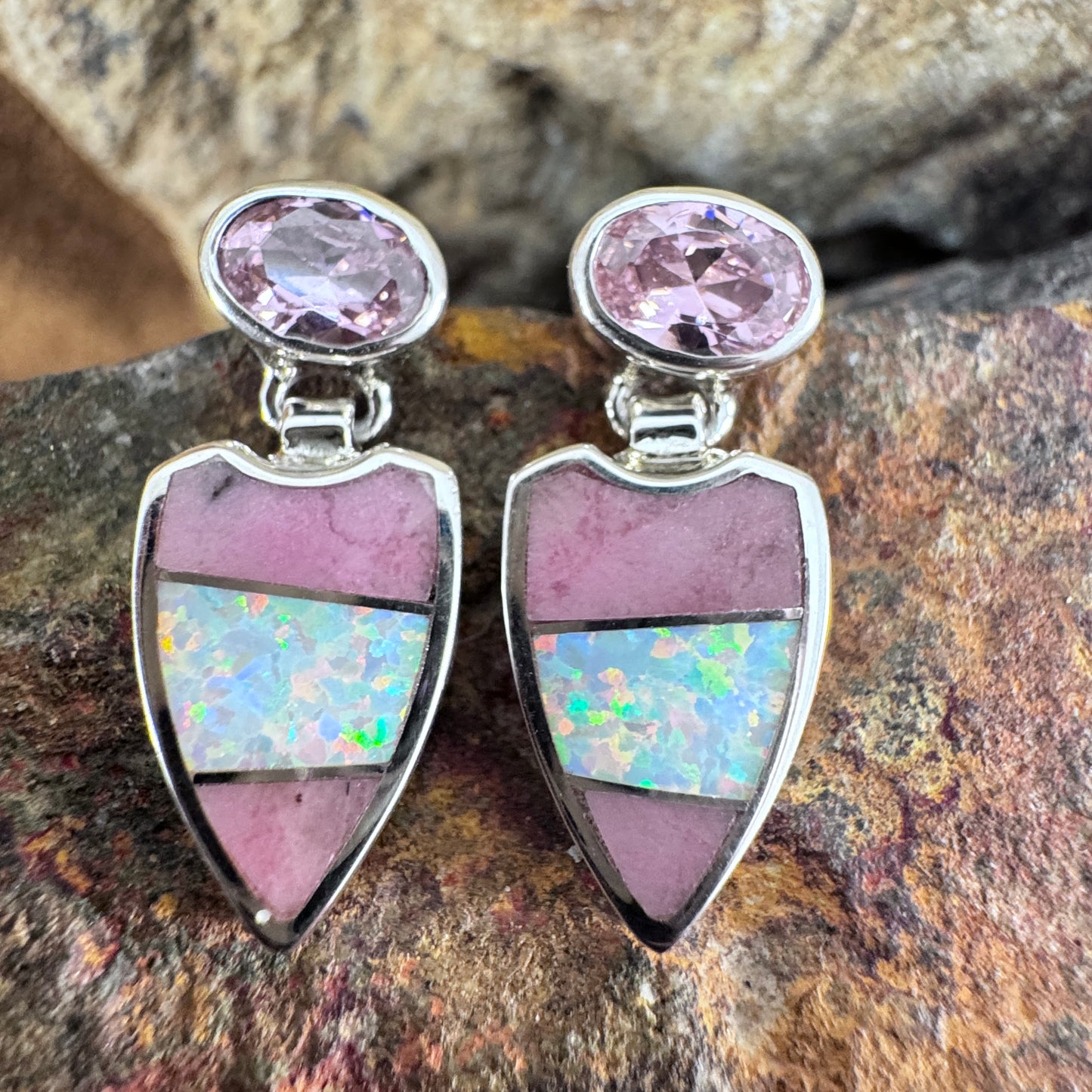 These gorgeous Sterling Silver Earrings, are now part of the Make Me Blush Collection, features Rhodonite, Pink Peruvian Opal and White Lab Opal with a Pink Cubic Zirconia.