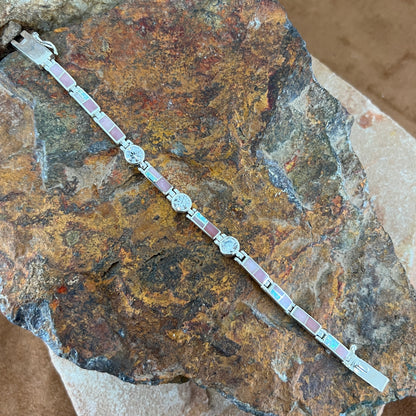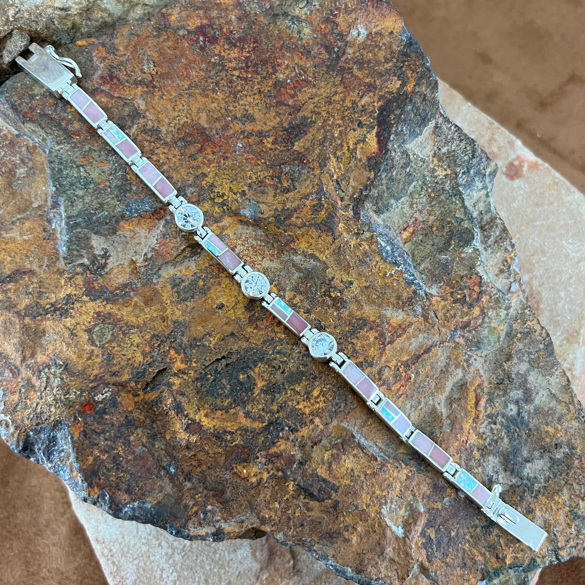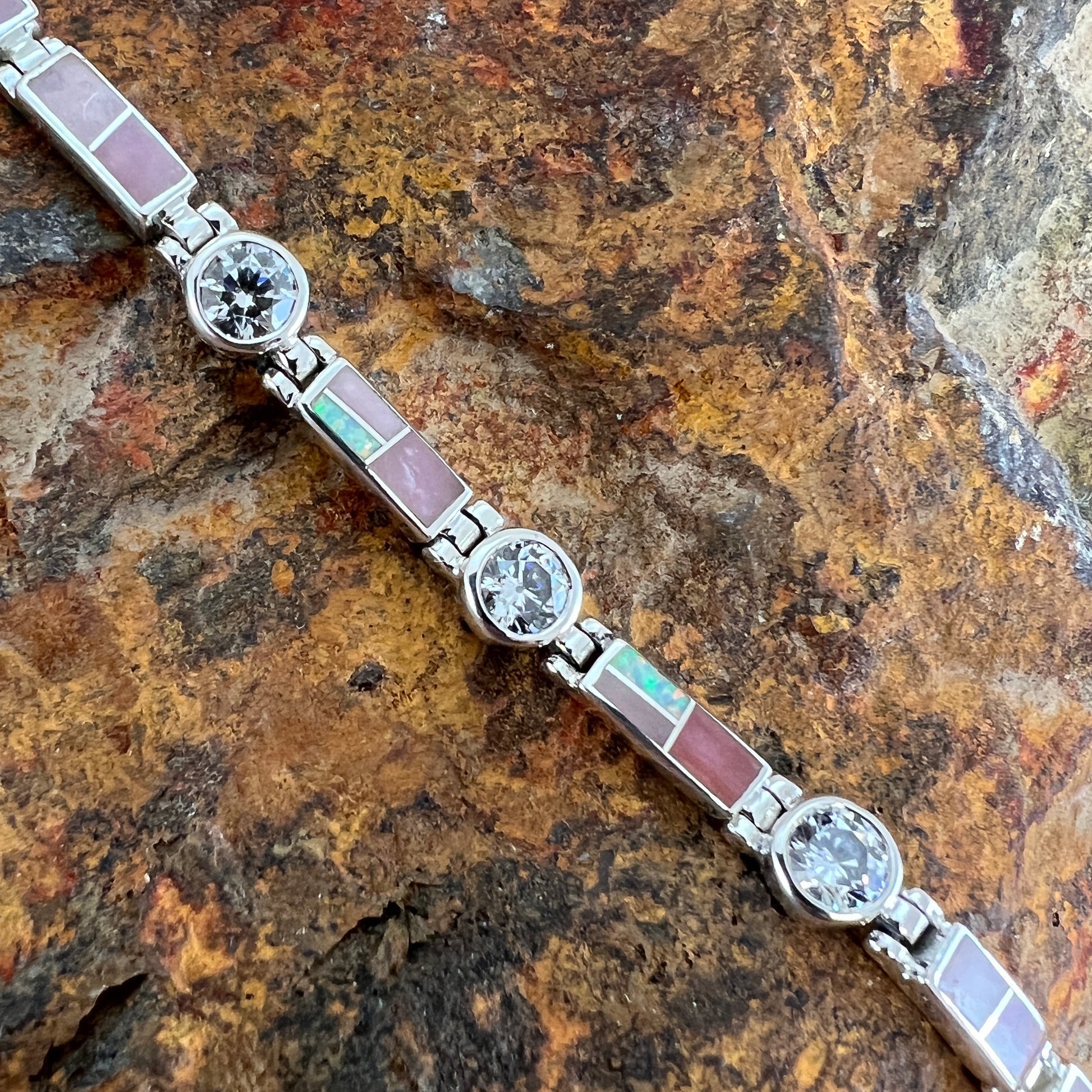 NEW COLOR COLLECTION: This beautiful Sterling Silver Link Bracelet, is now part of the Make Me Blush Collection, features Rhodonite, Pink Peruvian Opal and White Lab Opal. Three Cubic Zirconia Links