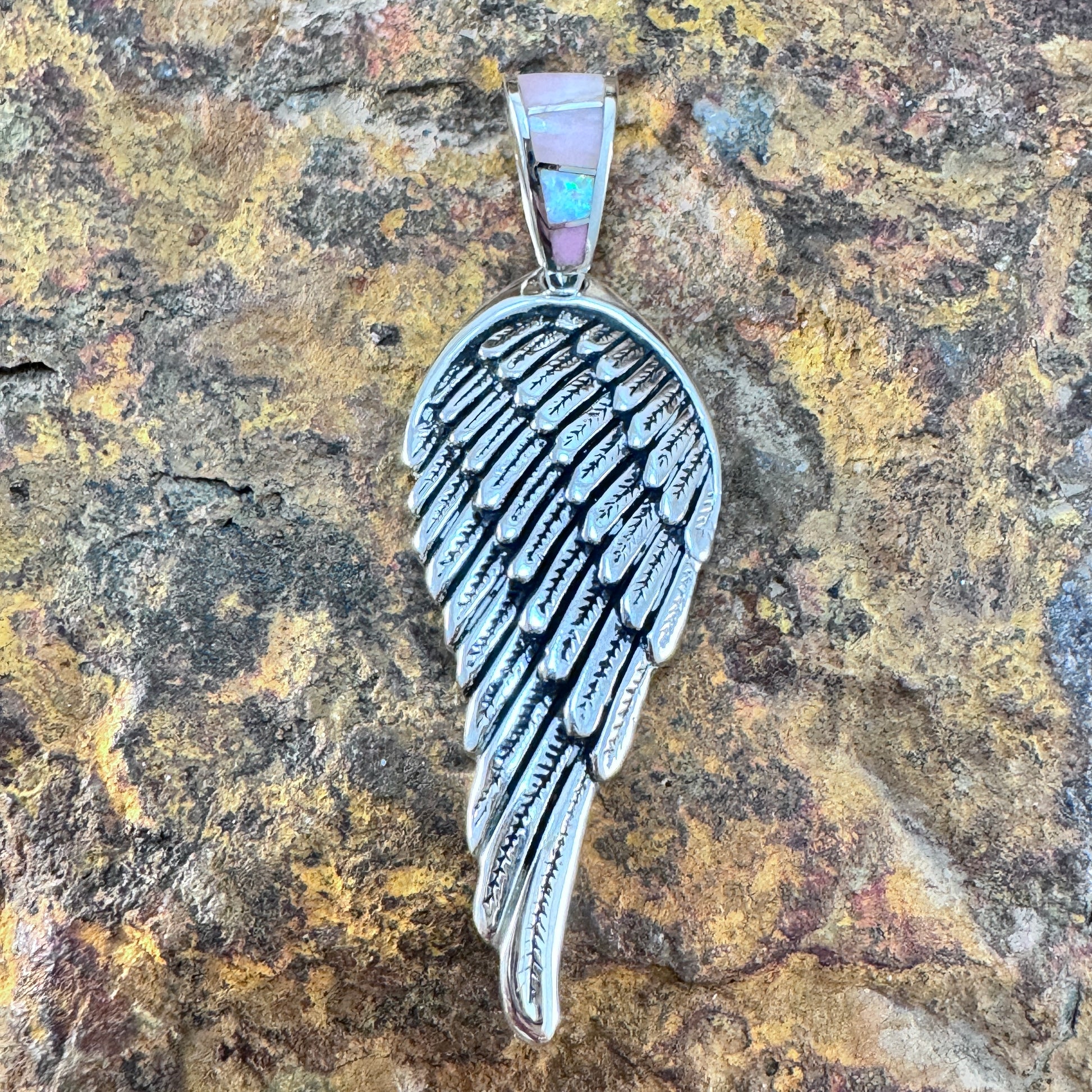 David Rosales Make Me Blush Inlaid Sterling Silver Pendant Angel Wing