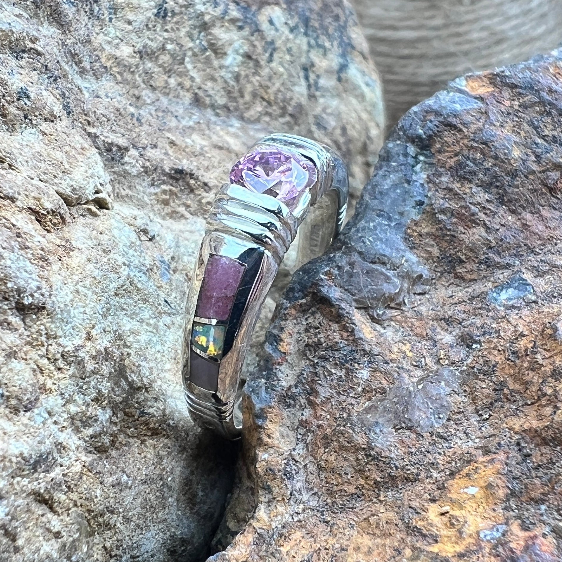 David Rosales Make Me Blush Inlaid Sterling Silver Ring Cubic Zirconia