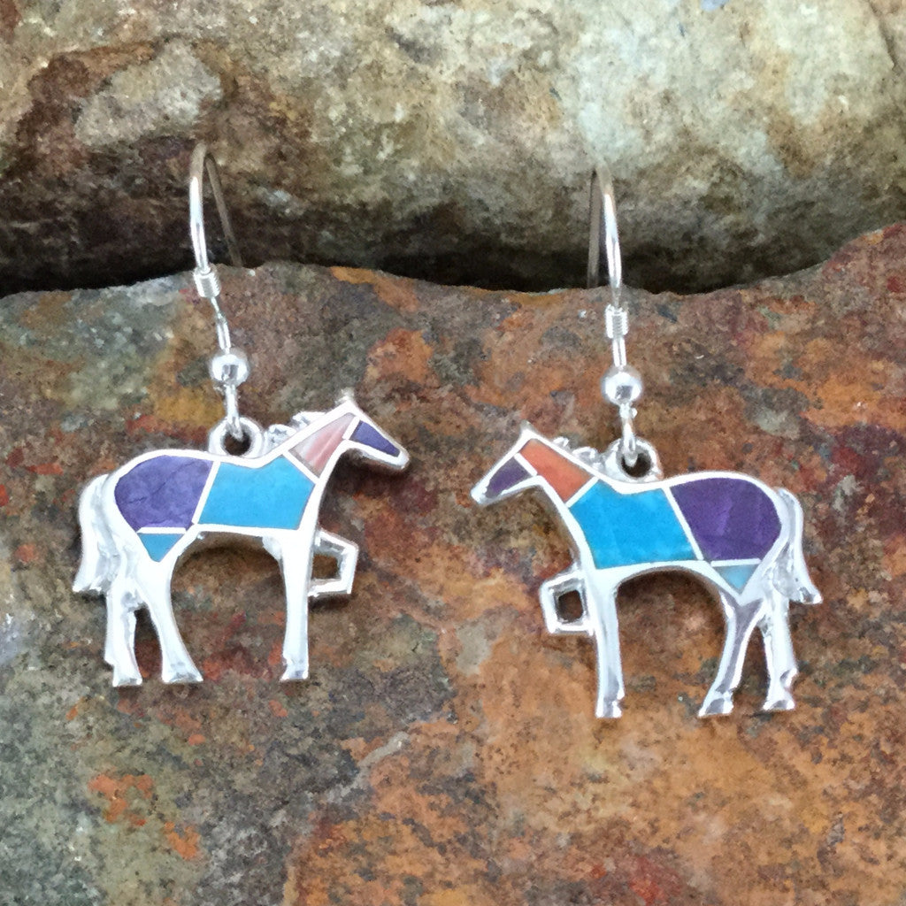 Ask a question about David Rosales Morenci Sunset Inlaid Sterling Silver Earrings Horse