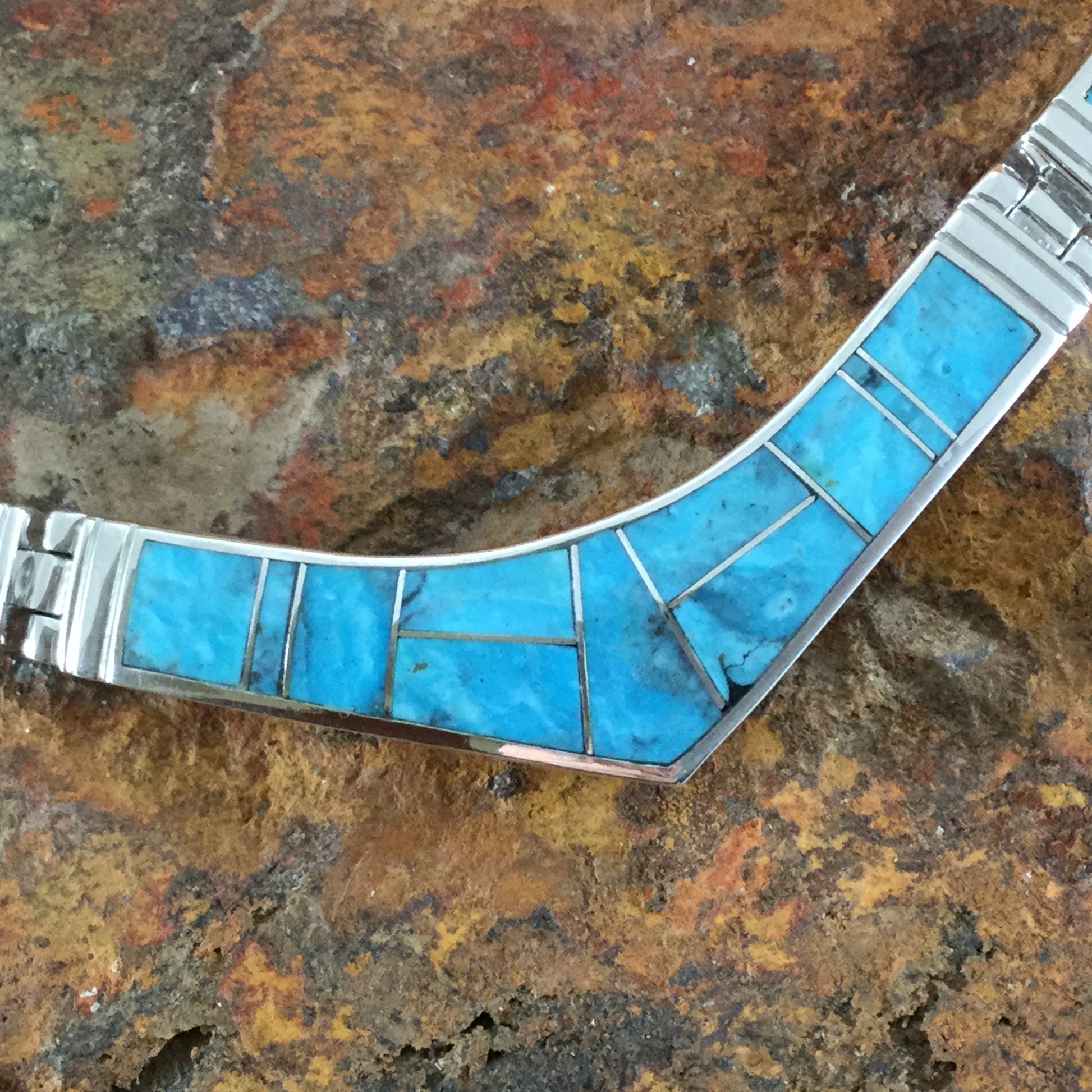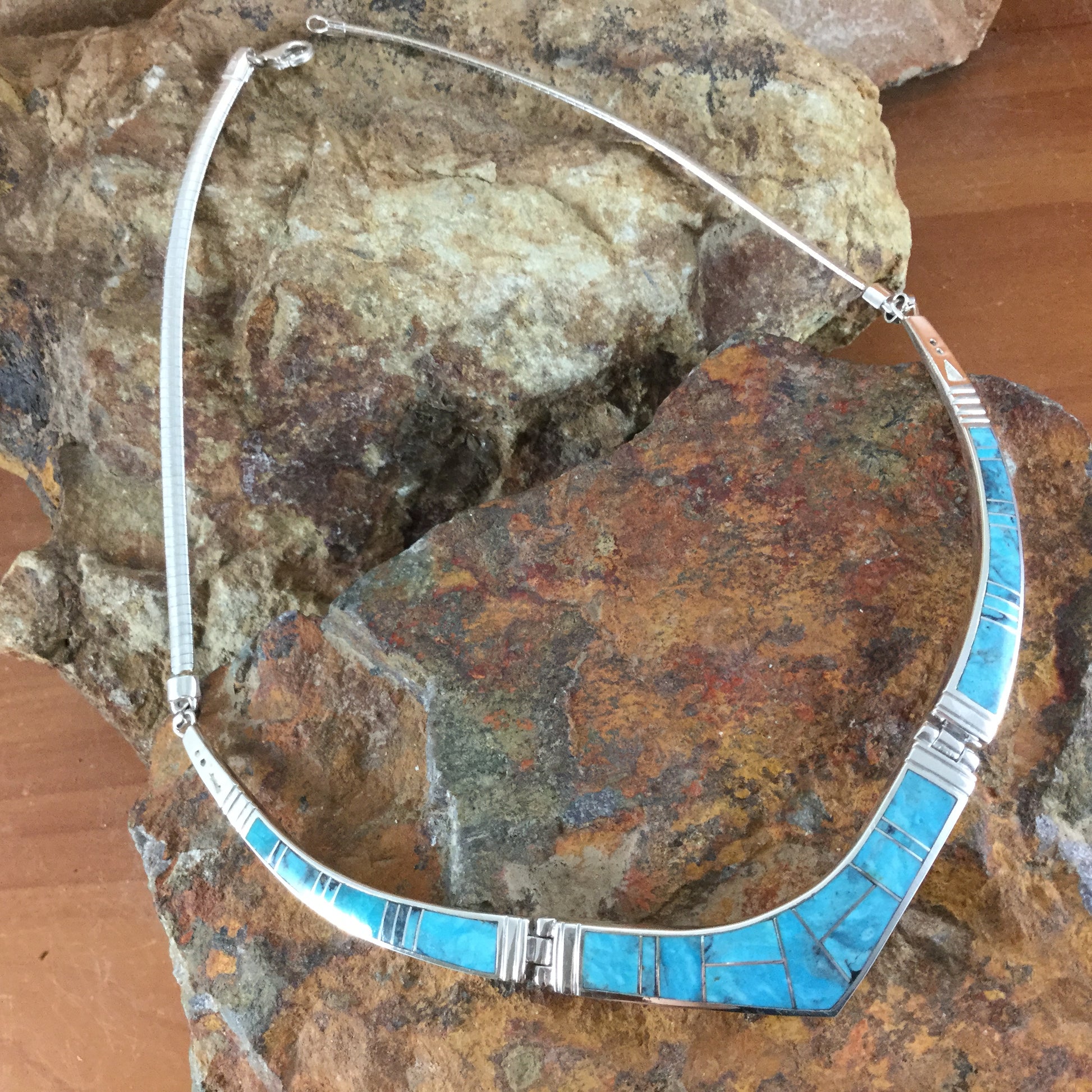 David Rosales Morenci Turquoise Inlaid Sterling Silver Necklace
