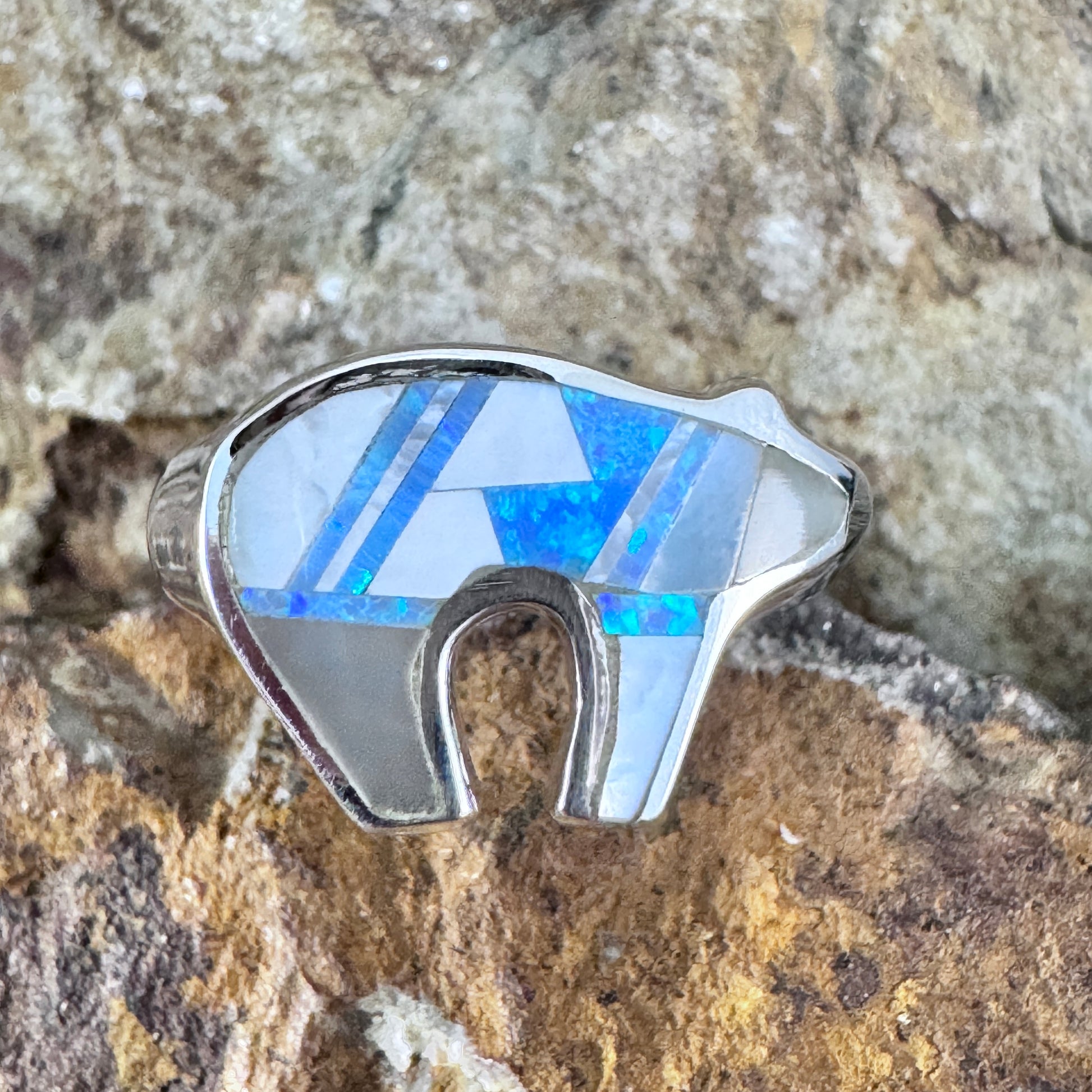David Rosales Mystic Pearl Inlaid Sterling Silver Ring Bear