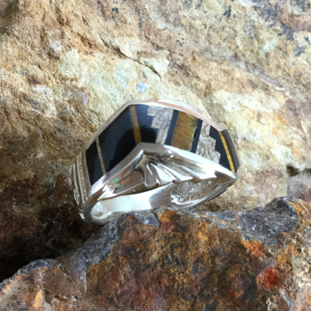 The ring is designed by David Rosales, one of the finest contemporary Southwest Artists in the world. He is the founder and co-owner of Supersmiths, Inc. of Gallup, NM.
