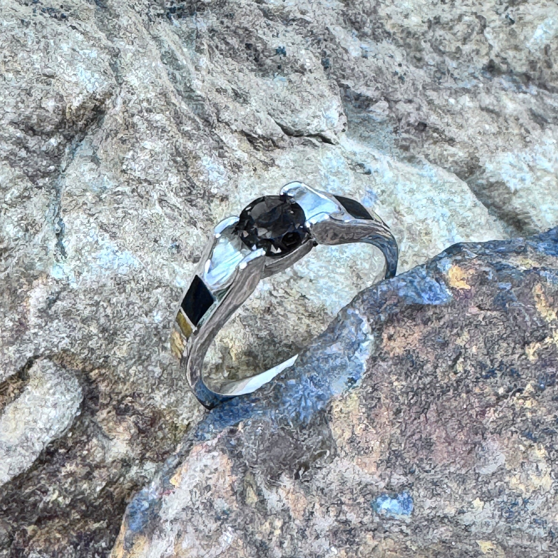 David Rosales Native Earth Inlaid Sterling Silver Ring w/ Smoky Topaz