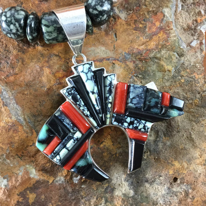 David Rosales New West Inlaid Sterling Silver Pendant Bear w/ Necklace
