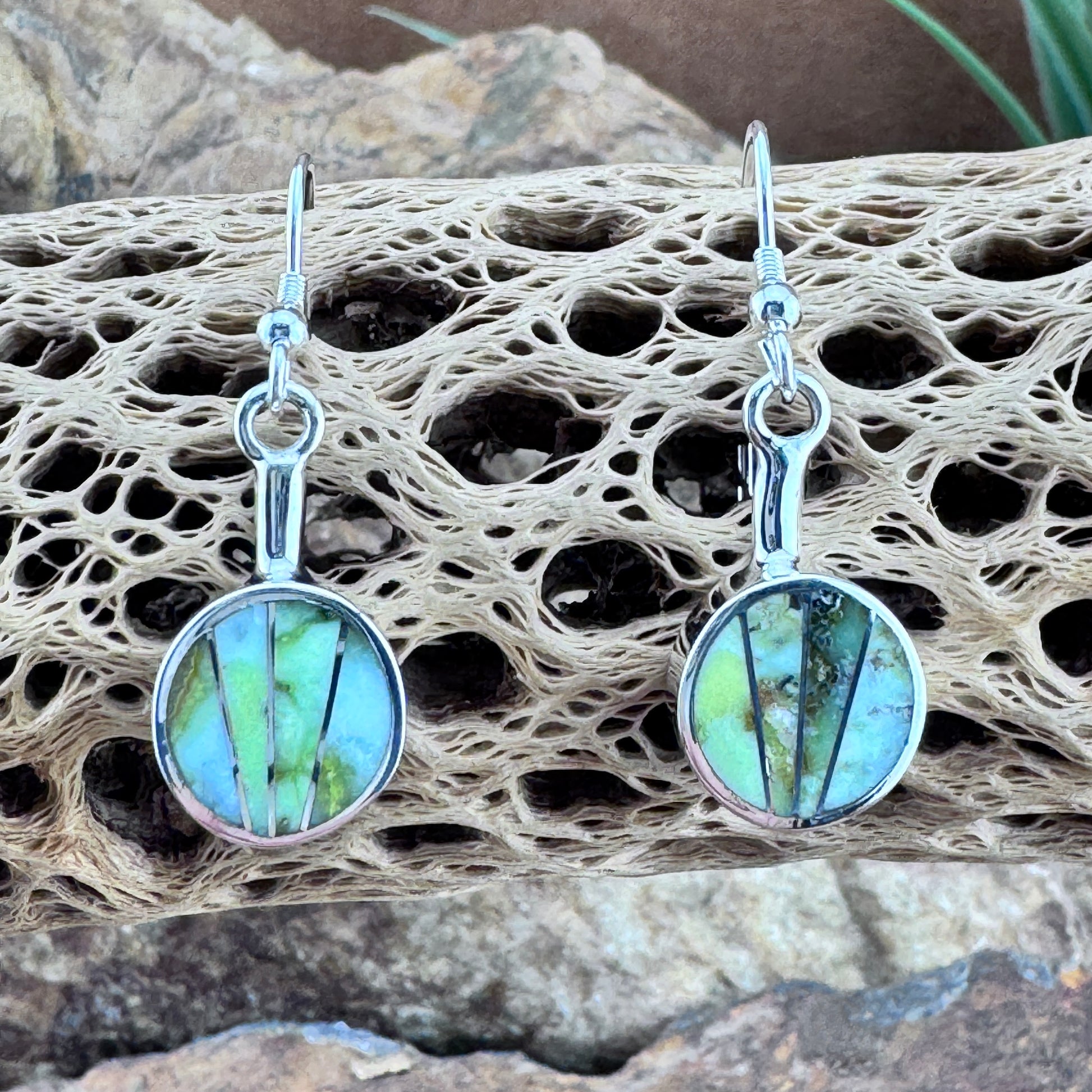 These beautiful Sterling Silver Earrings showcase the soft pale Greens & Blues with a subtle light brown matrix of Palomino Variscite from Nevada.