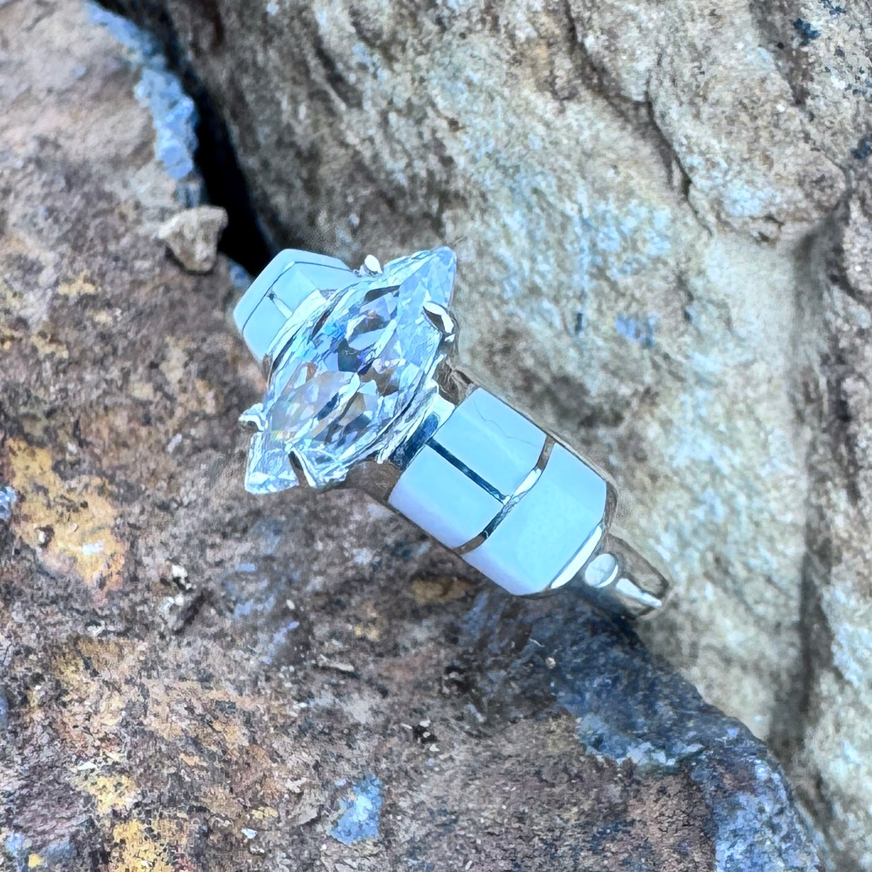 David Rosales Pristine Inlaid Sterling Silver Ring with Cubic Zirconia