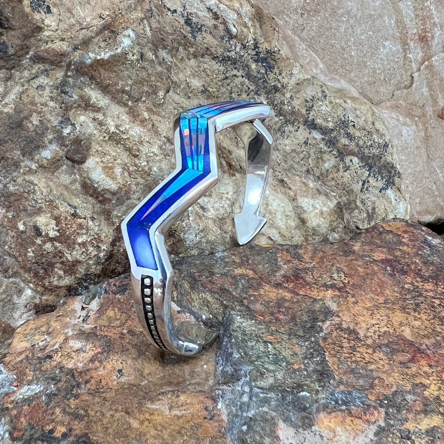 Ask a question about David Rosales Rain Cloud Inlaid Sterling Silver Bracelet