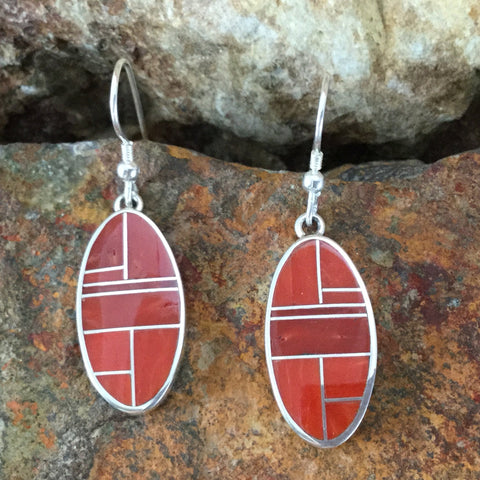 David Rosales Red Coral Inlaid Sterling Silver Earrings
