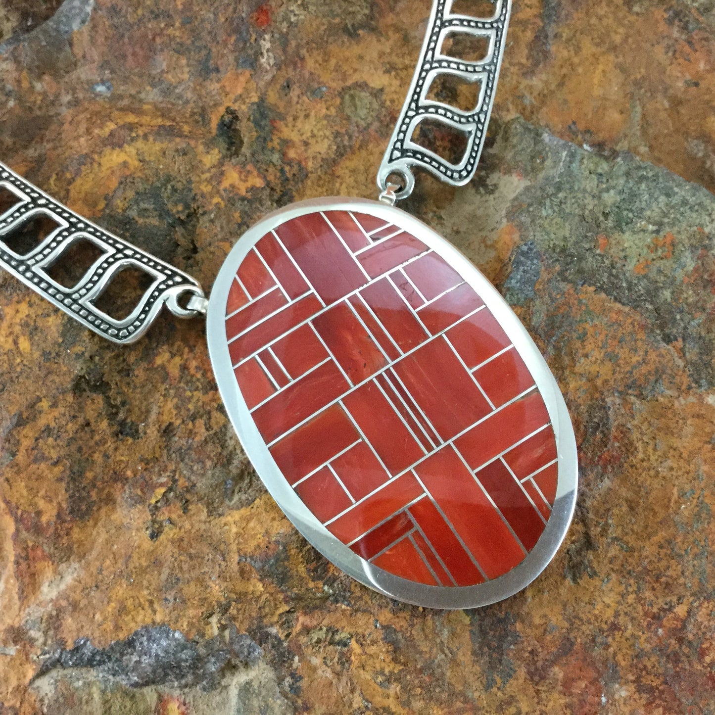 These beautiful Sterling Silver Earrings features Inlaid Mediterranean Red Coral. Also shown is matching Necklace SSN3040 at $2,325.00.