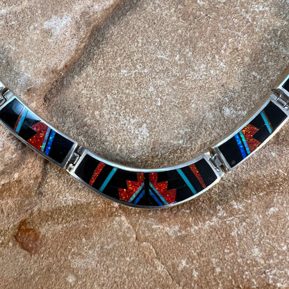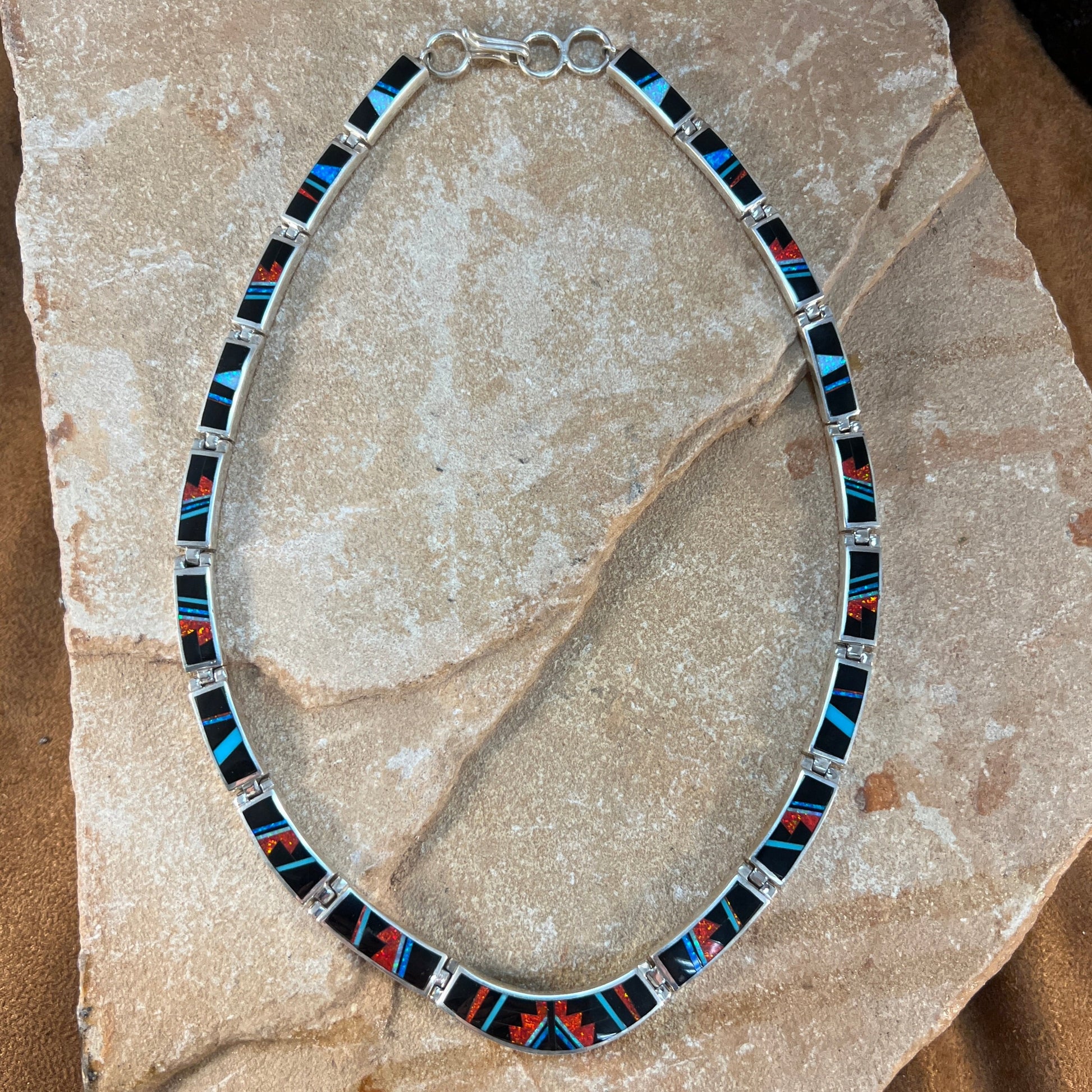 David Rosales Red Moon Fancy Inlaid Sterling Silver Necklace