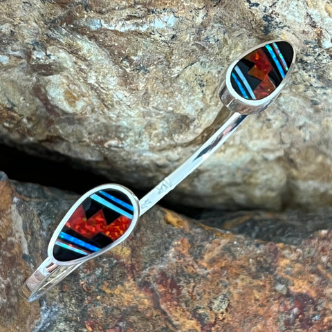 David Rosales Red Moon Inlaid Sterling Silver Bracelet
