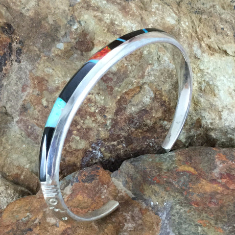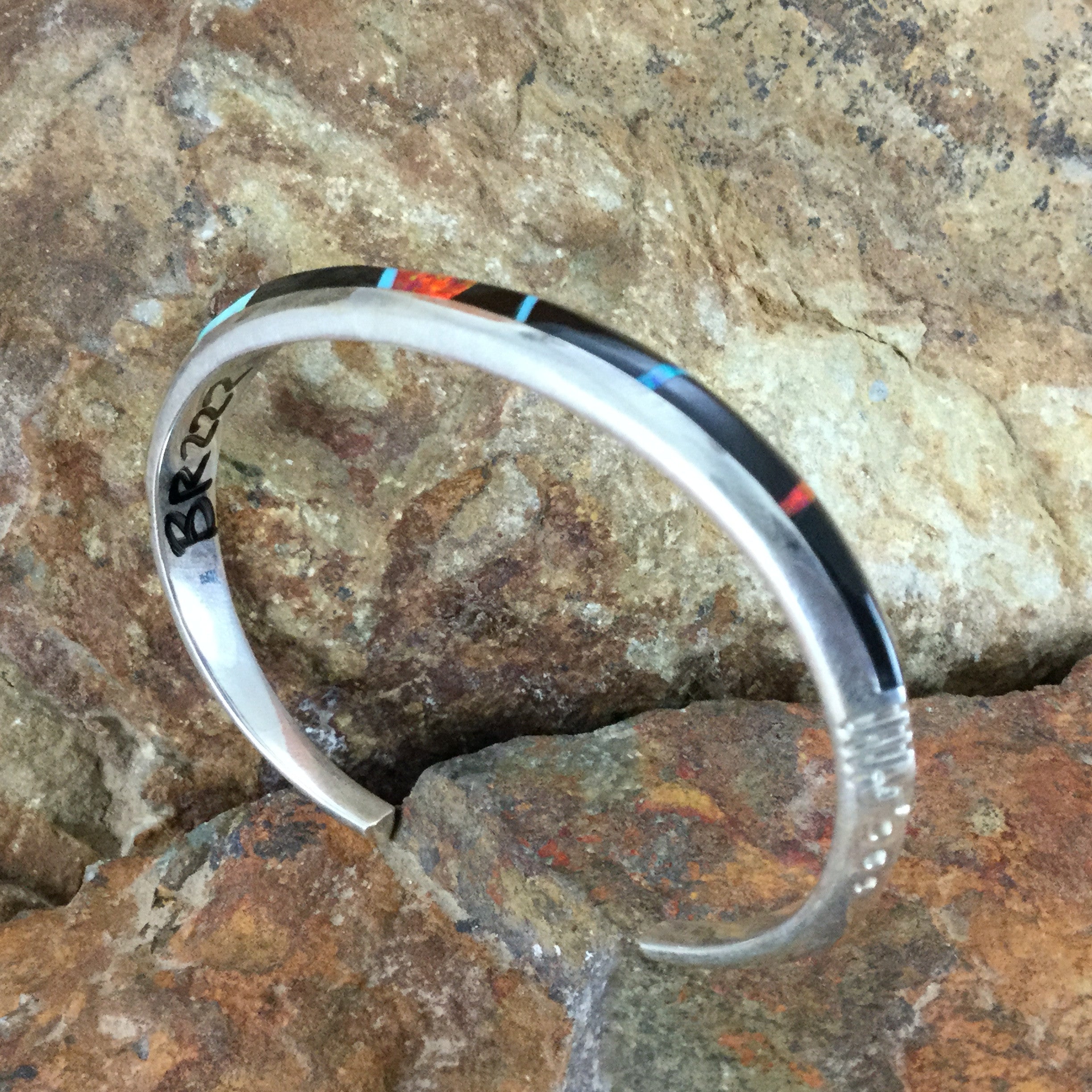 David Rosales Red Moon Inlaid Sterling Silver Bracelet