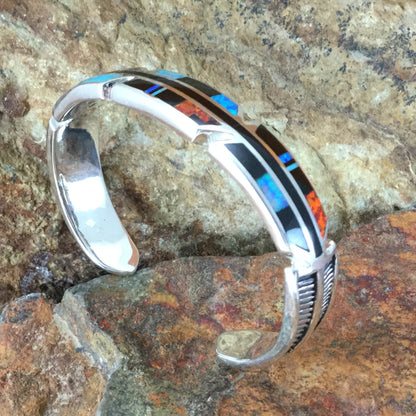 All other Native American made cuff bracelets with inlay cannot be adjusted and are typically one of a kind pieces that cannot be reordered exactly. Bracelets with a cabochon stone and silver cuff thin enough to bend may be adjusted with care.