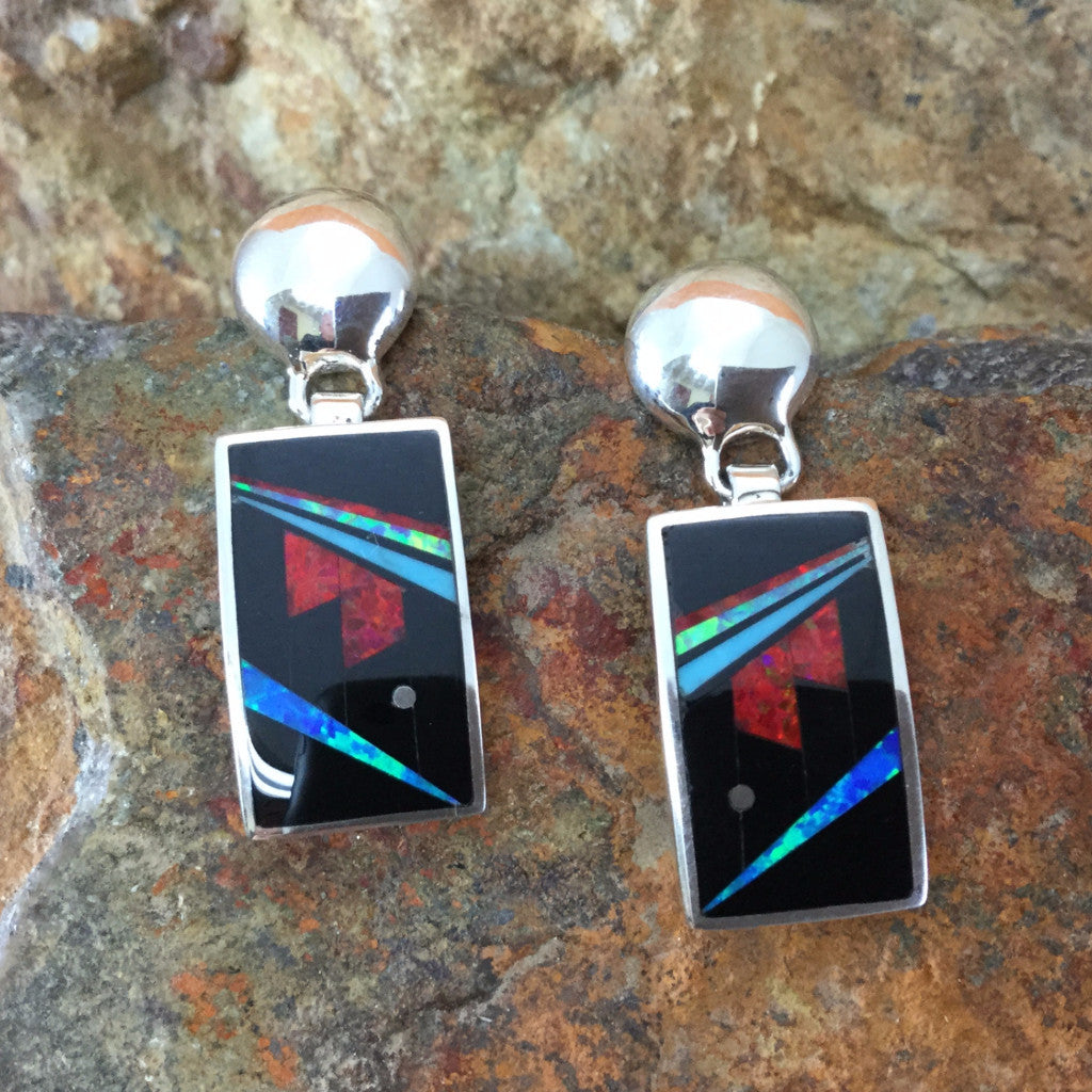 David Rosales Red Moon Inlaid Sterling Silver Earrings