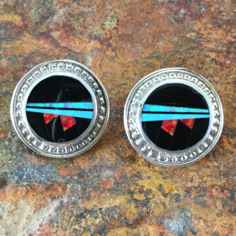 David Rosales Red Moon Inlaid Sterling Silver Earrings