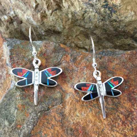 David Rosales Red Moon Inlaid Sterling Silver Earrings Dragonfly