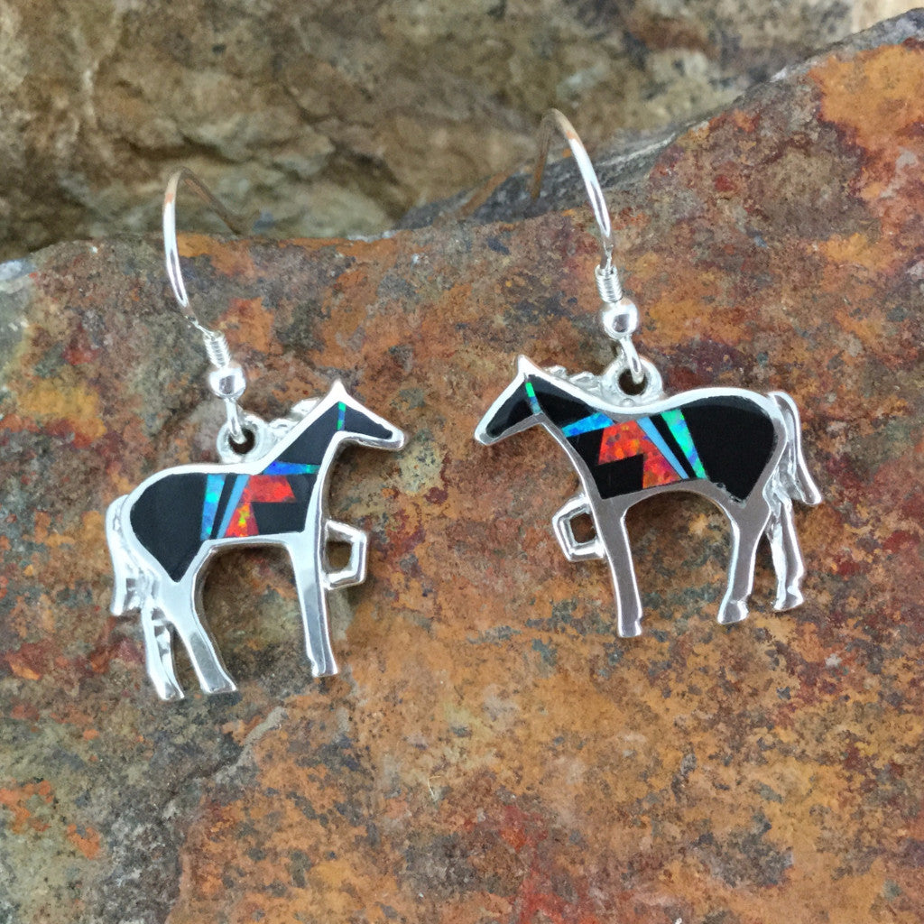 Ask a question about David Rosales Red Moon Fancy Inlaid Sterling Silver Earrings Horse