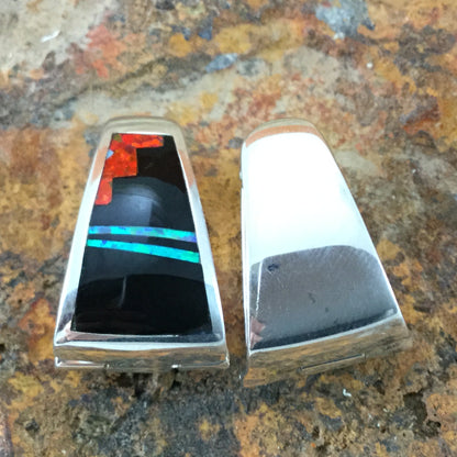 David Rosales Red Moon Inlaid Sterling Silver Huggie Earrings