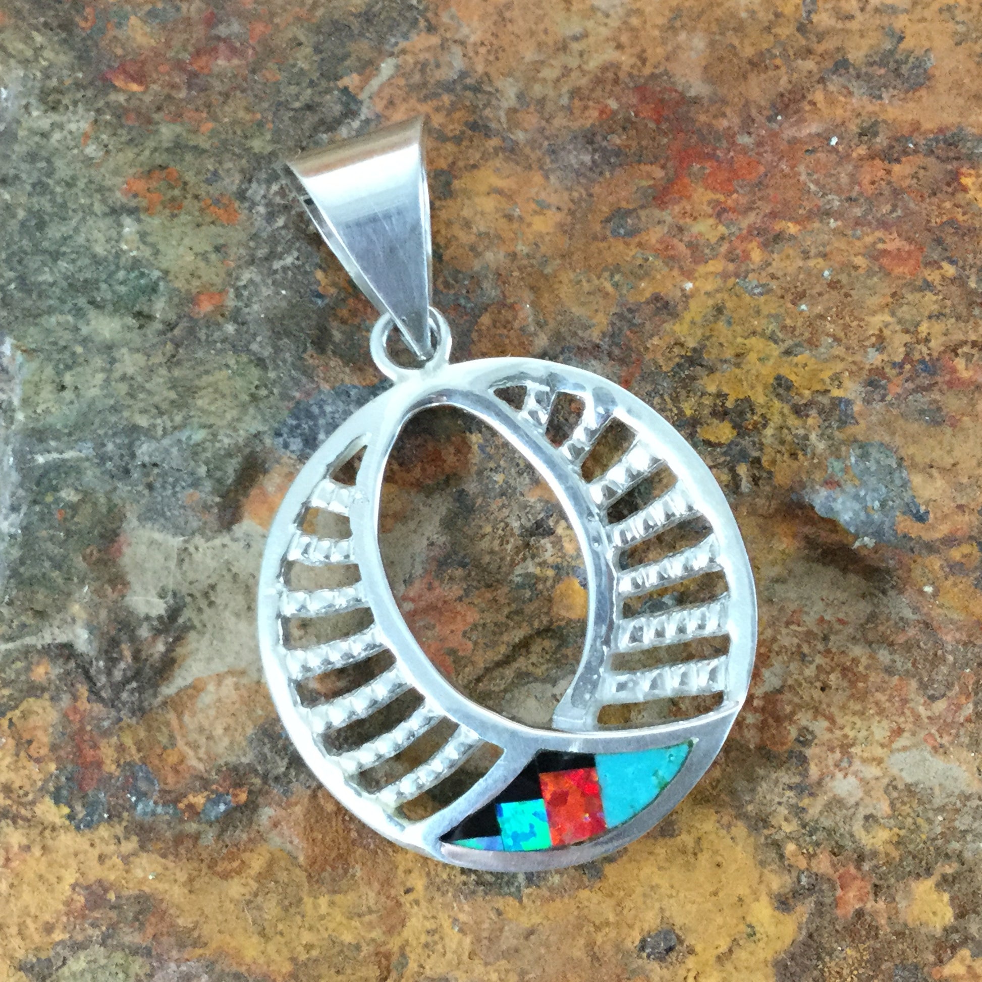 David Rosales Red Moon Inlaid Sterling Silver Pendant