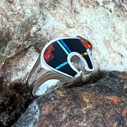 David Rosales Red Moon Inlaid Sterling Silver Ring Bear