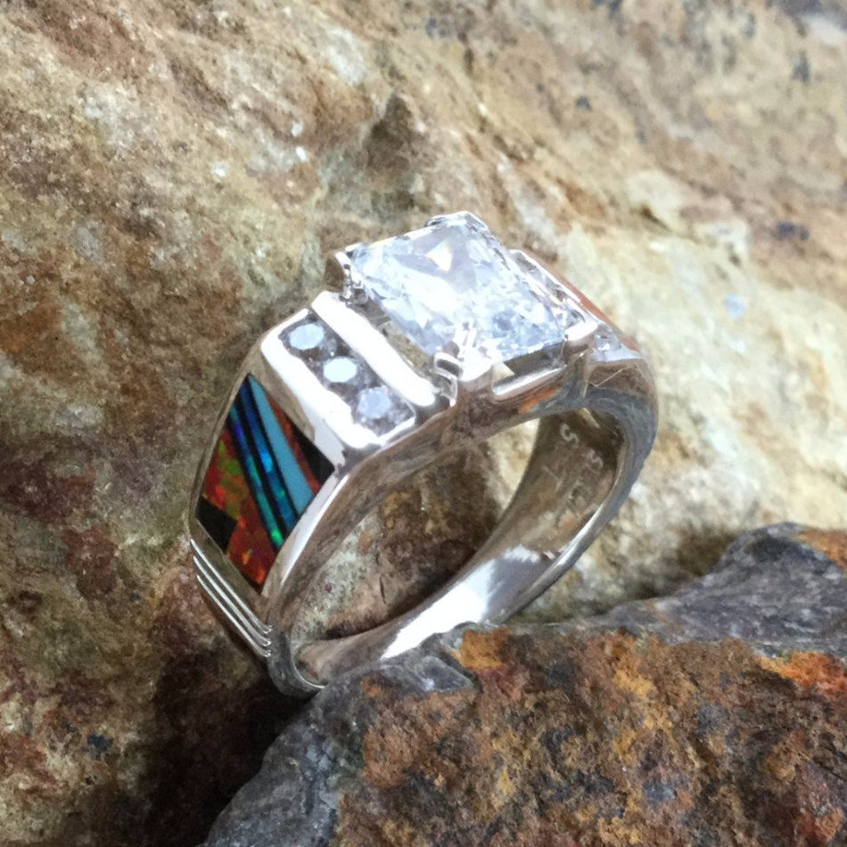 Ask a question about David Rosales Red Moon Inlaid Sterling Silver Ring w/ Cubic Zirconia