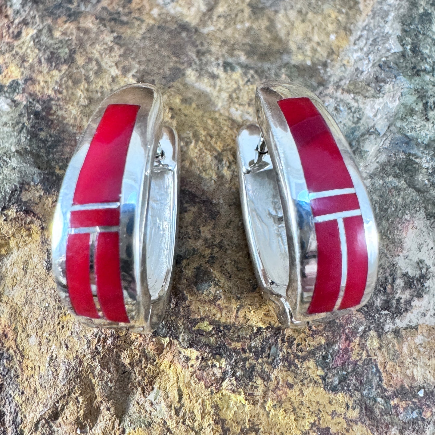 David Rosales Rosarita Inlaid Sterling Silver Earrings Huggie