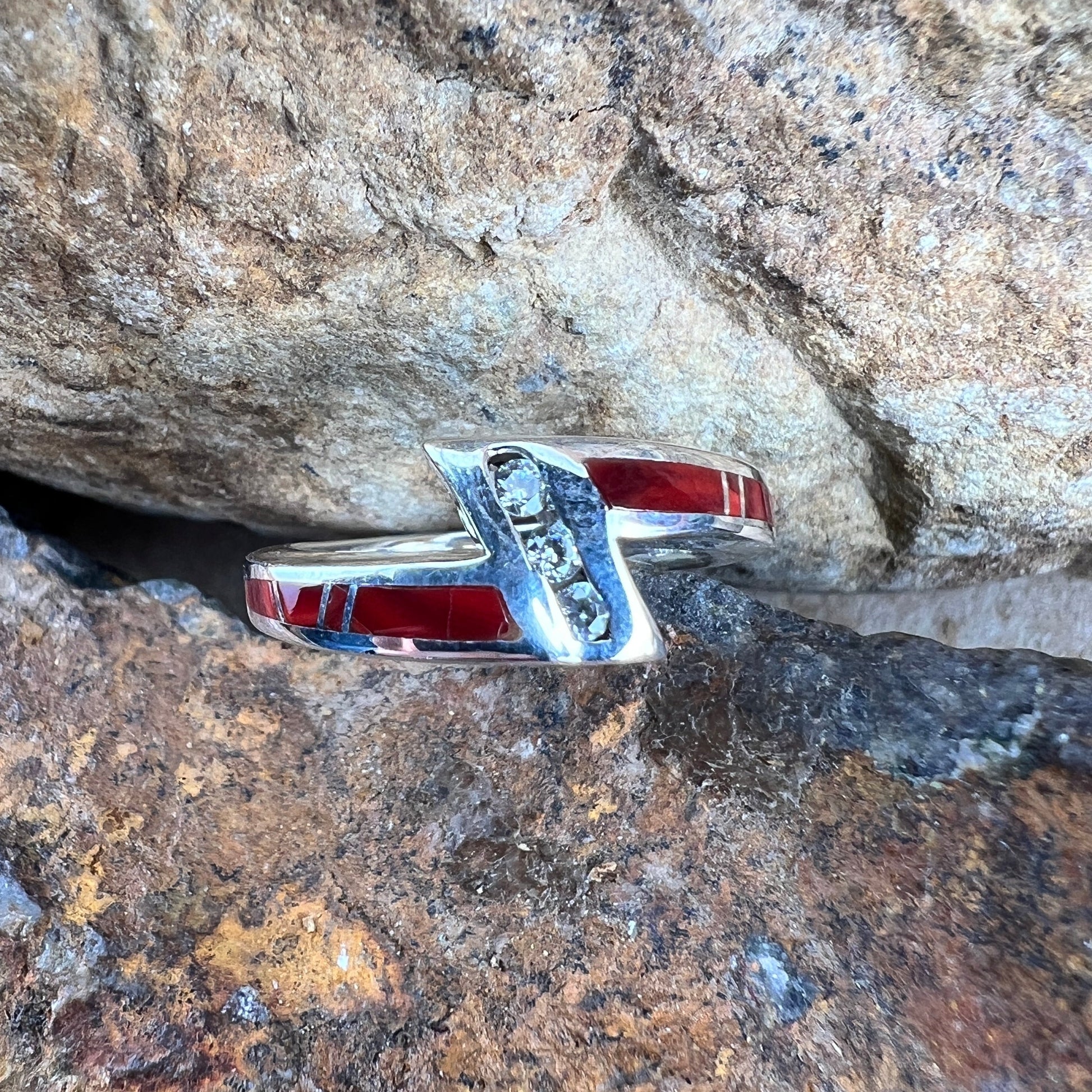 David Rosales Rosarita Inlaid Sterling Silver Ring w/ Cubic Zirconia