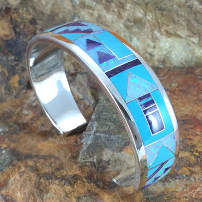 David Rosales Shalako Fancy Inlaid Sterling Silver Bracelet