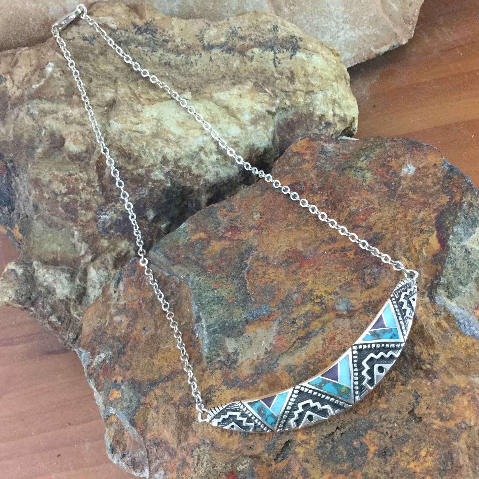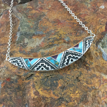 David Rosales Shalako Inlaid Sterling Silver Necklace