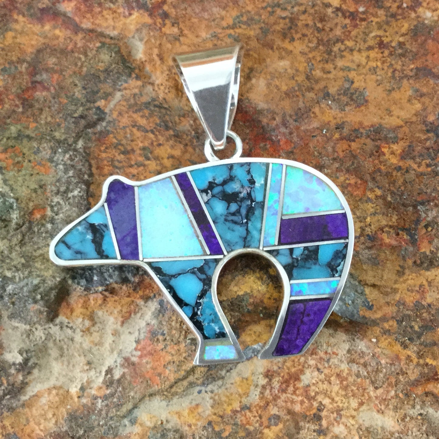 David Rosales Shalako Inlaid Sterling Silver Pendant Bear