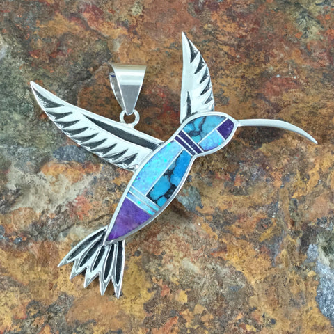 David Rosales Shalako Inlaid Sterling Silver Pendant Hummingbird