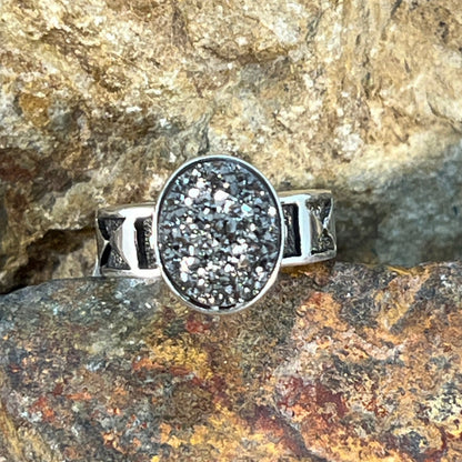 David Rosales Silver Country Oval Druzy Sterling Silver Ring