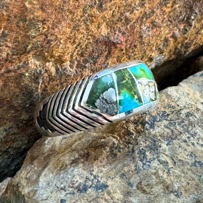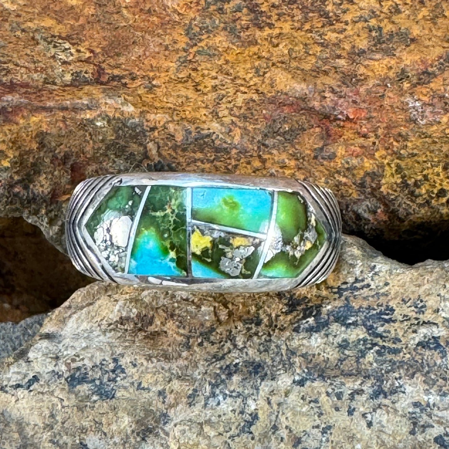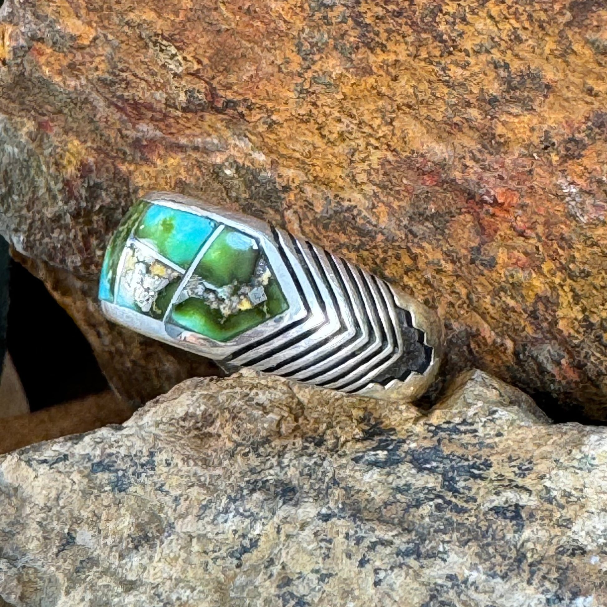 This beautiful Sterling Silver Ring showcases the spectacular Green, Blue and Yellow hues of Sonoran Gold Turquoise from Mexico.