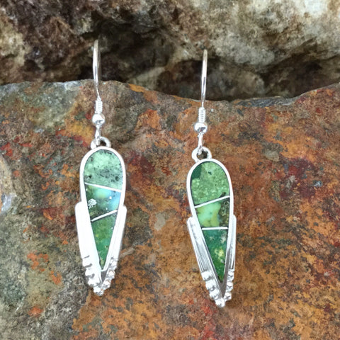 These gorgeous Sterling Silver Earrings showcase the spectacular Green, Blue and Yellow hues of Sonoran Gold Turquoise from Mexico.