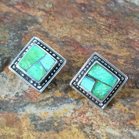 These gorgeous Sterling Silver Earrings showcase the spectacular Green, Blue and Yellow hues of Sonoran Gold Turquoise from Mexico.