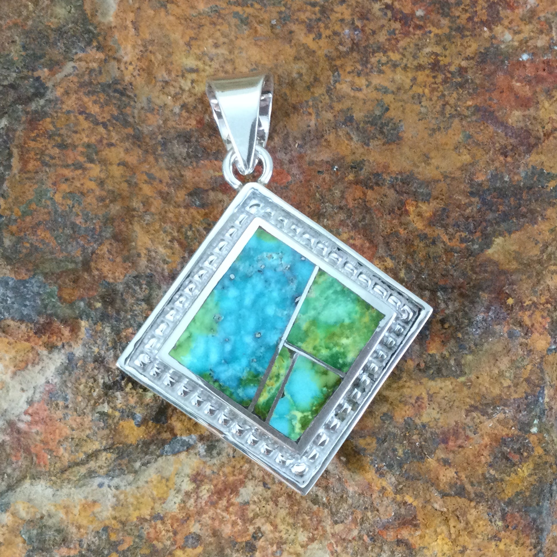 The Pendant is designed by David Rosales, one of the finest contemporary Southwest Artists in the world. He is the founder and co-owner of Supersmiths, Inc. of Gallup, NM.