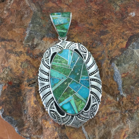 This Beautiful Sterling Silver Pendant features the spectacular Green, Blue and Yellow hues of Sonoran Gold Turquoise from Mexico.