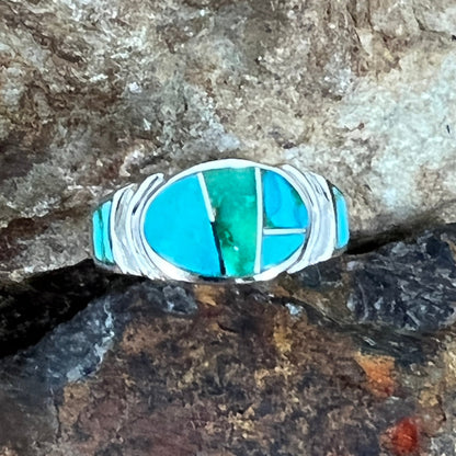 This beautiful Sterling Silver Ring showcases the spectacular Green, Blue and Yellow hues of Sonoran Gold Turquoise from Mexico.