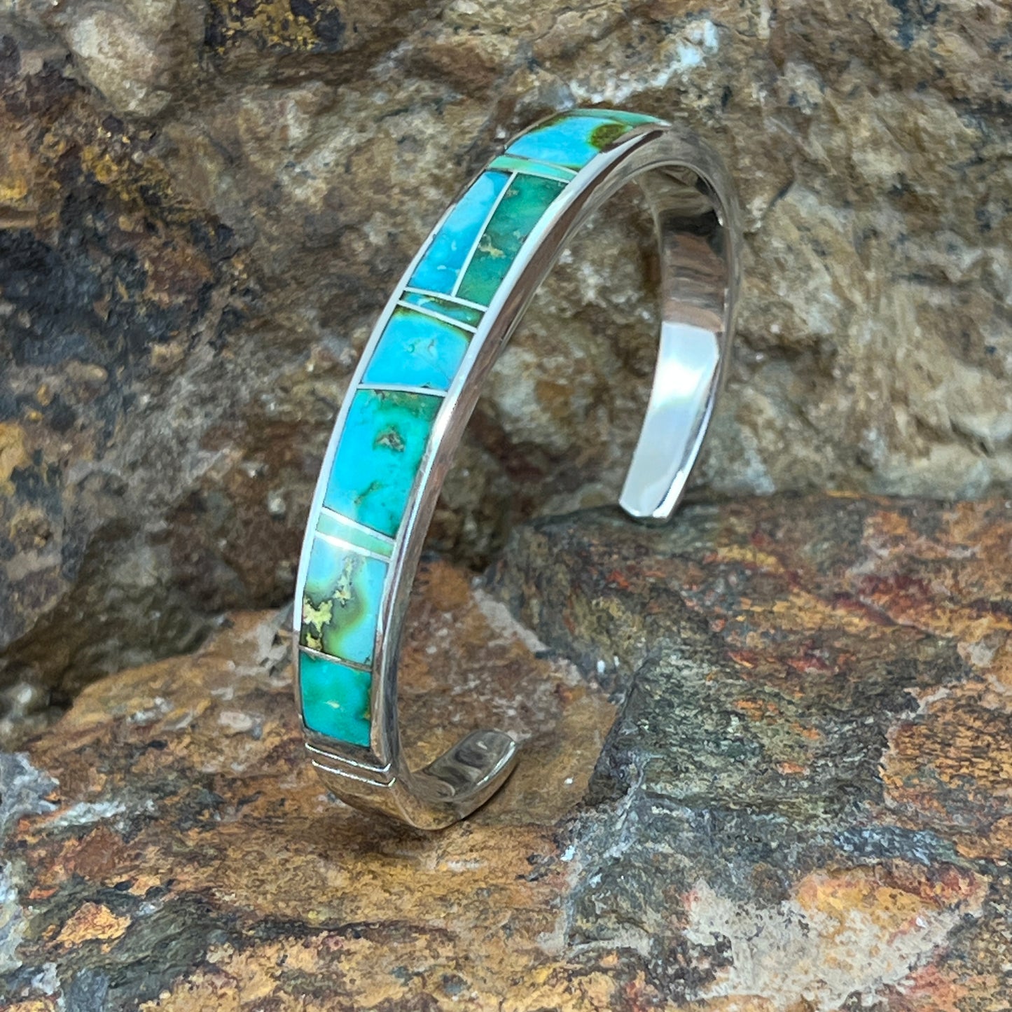 David Rosales Sonoran Gold Turquoise Inlaid Sterling Silver Cuff Bracelet