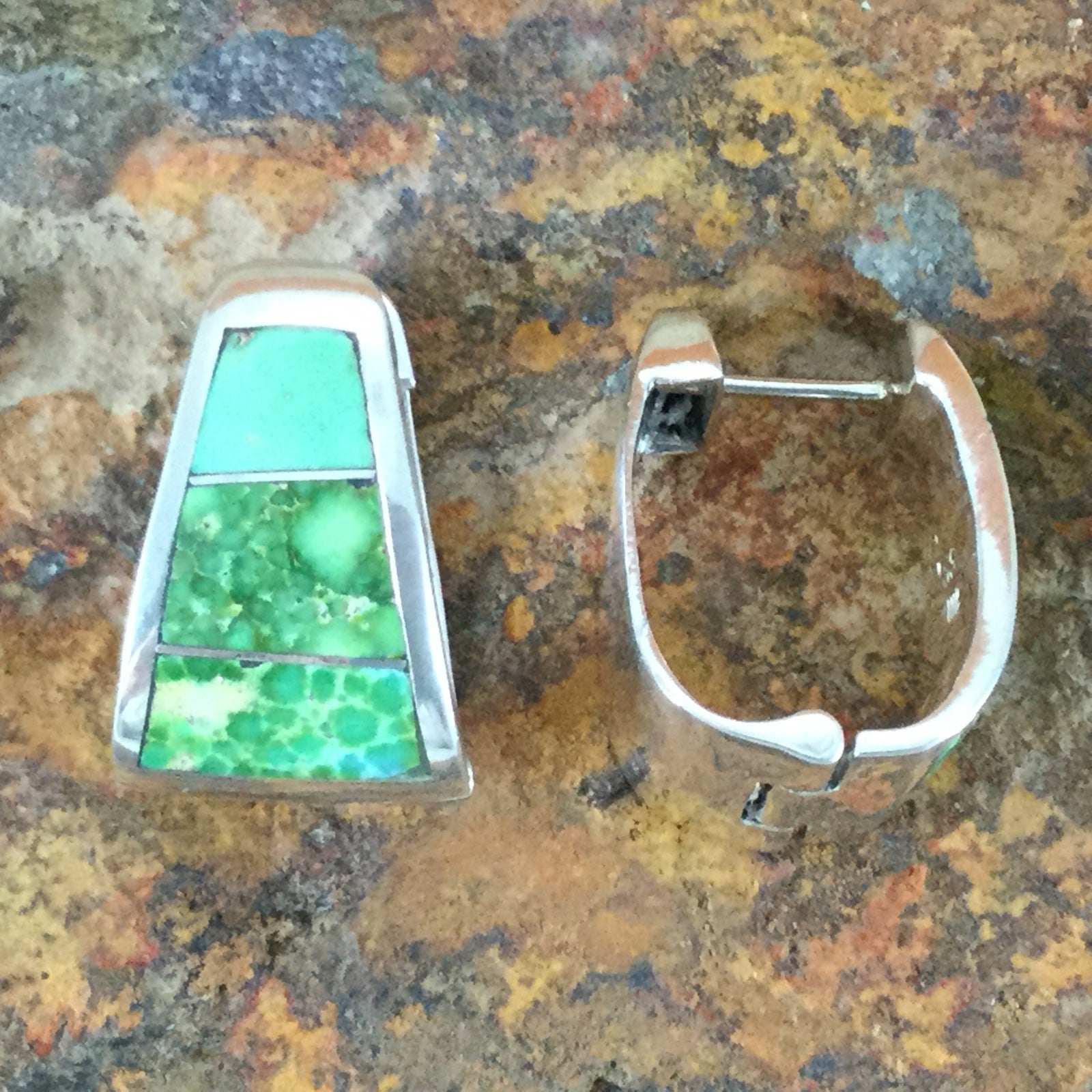 Ask a question about David Rosales Sonoran Gold Turquoise Inlaid Sterling Silver Earrings Huggie