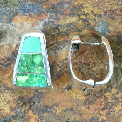 David Rosales Sonoran Gold Turquoise Inlaid Sterling Silver Earrings Huggie