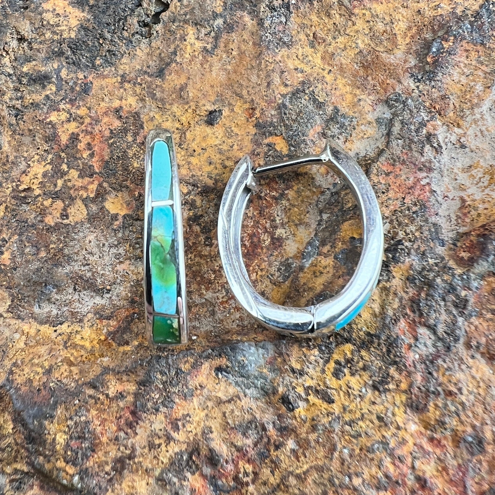 David Rosales Sonoran Gold Turquoise Inlaid Sterling Silver Huggie Earrings