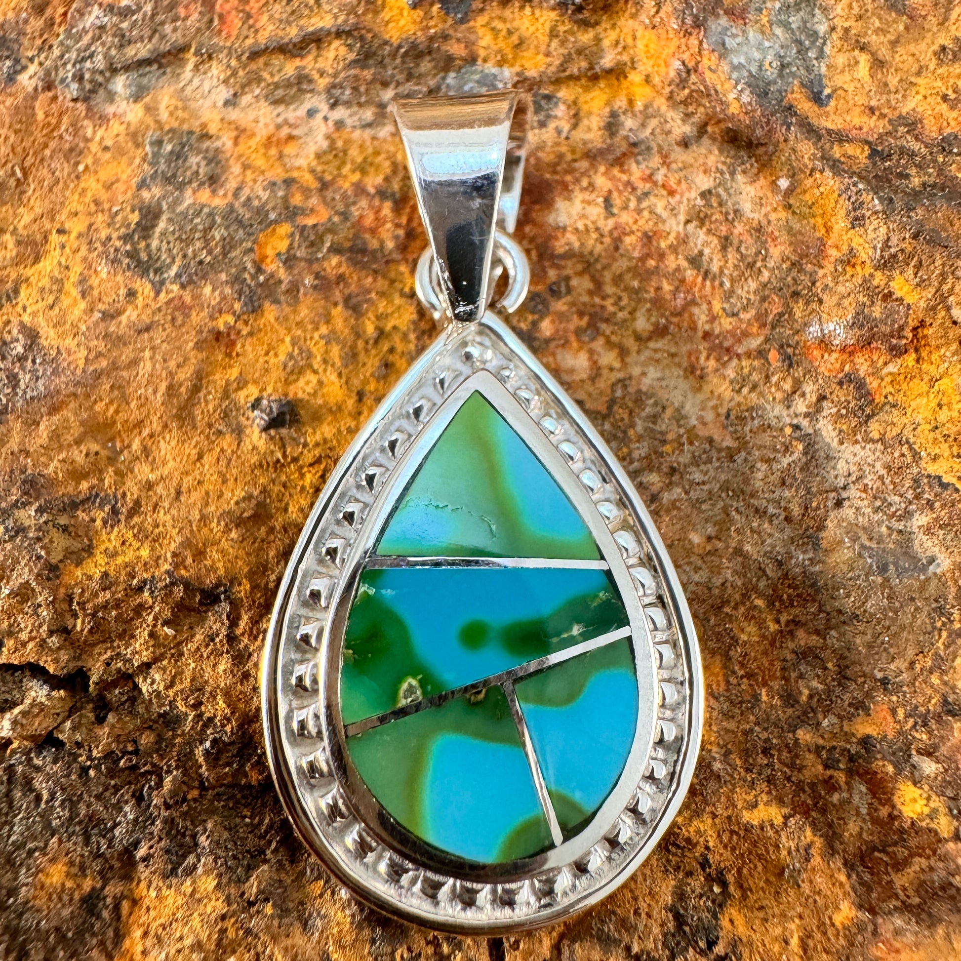 David Rosales Sonoran Gold Turquoise Inlaid Sterling Silver Pendant
