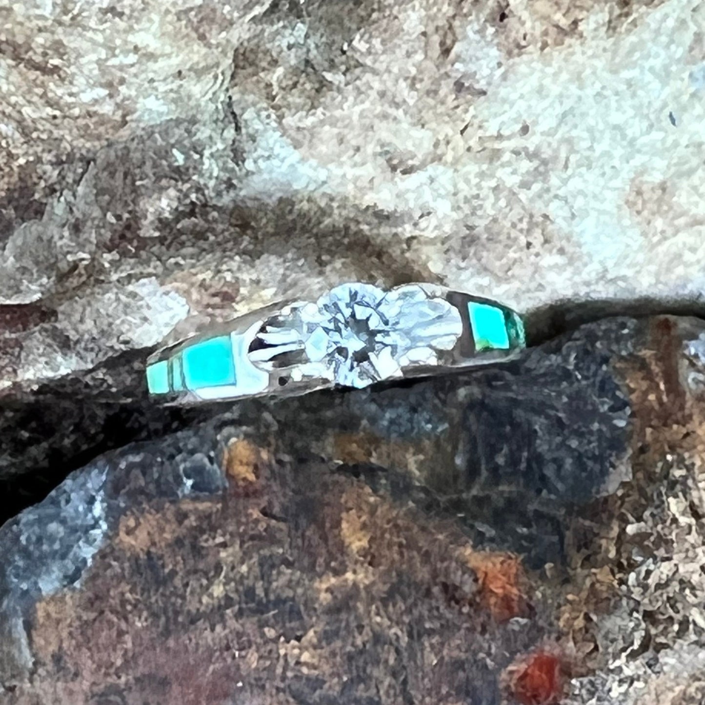 Ask a question about David Rosales Sonoran Gold Turquoise Inlaid Sterling Silver Ring w/ Cubic Zirconia