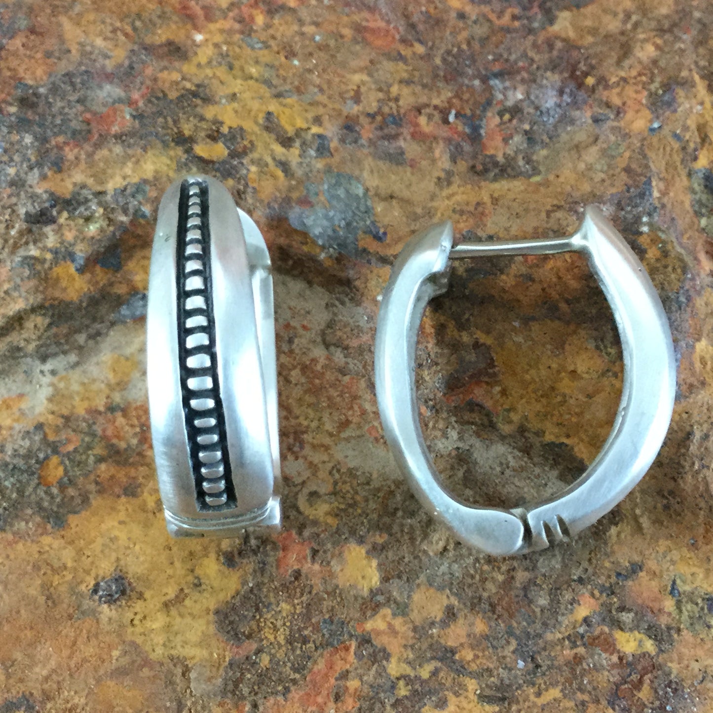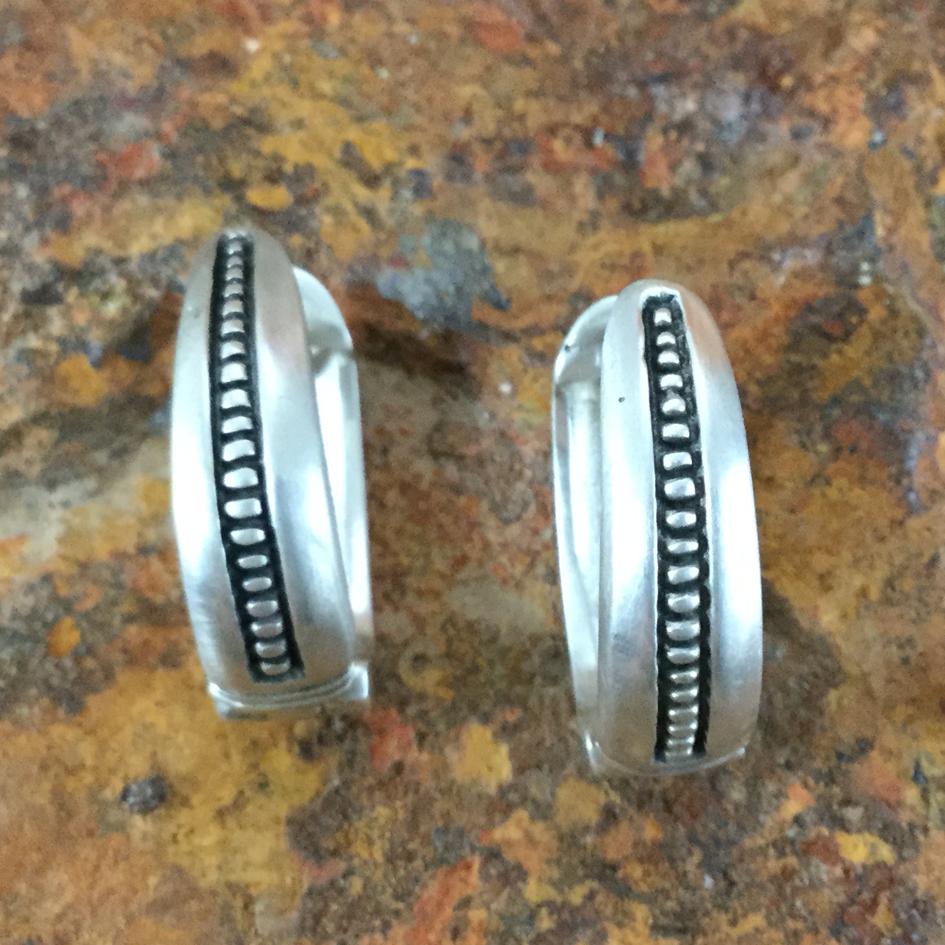 These gorgeous Sterling Silver Earrings feature a simple oxidized background finish.