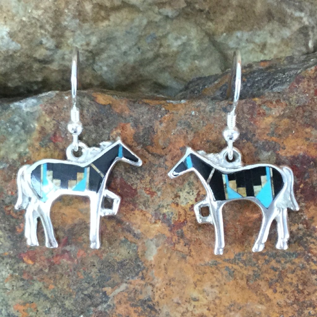 Ask a question about David Rosales Turquoise Creek Fancy Inlaid Sterling Silver Earrings Horse