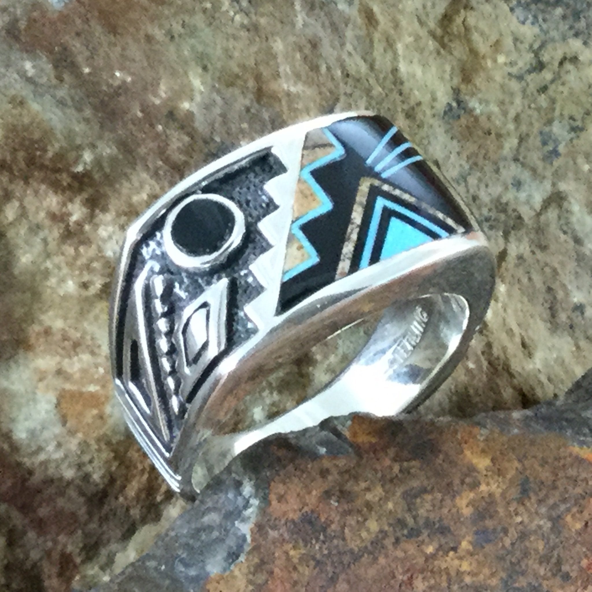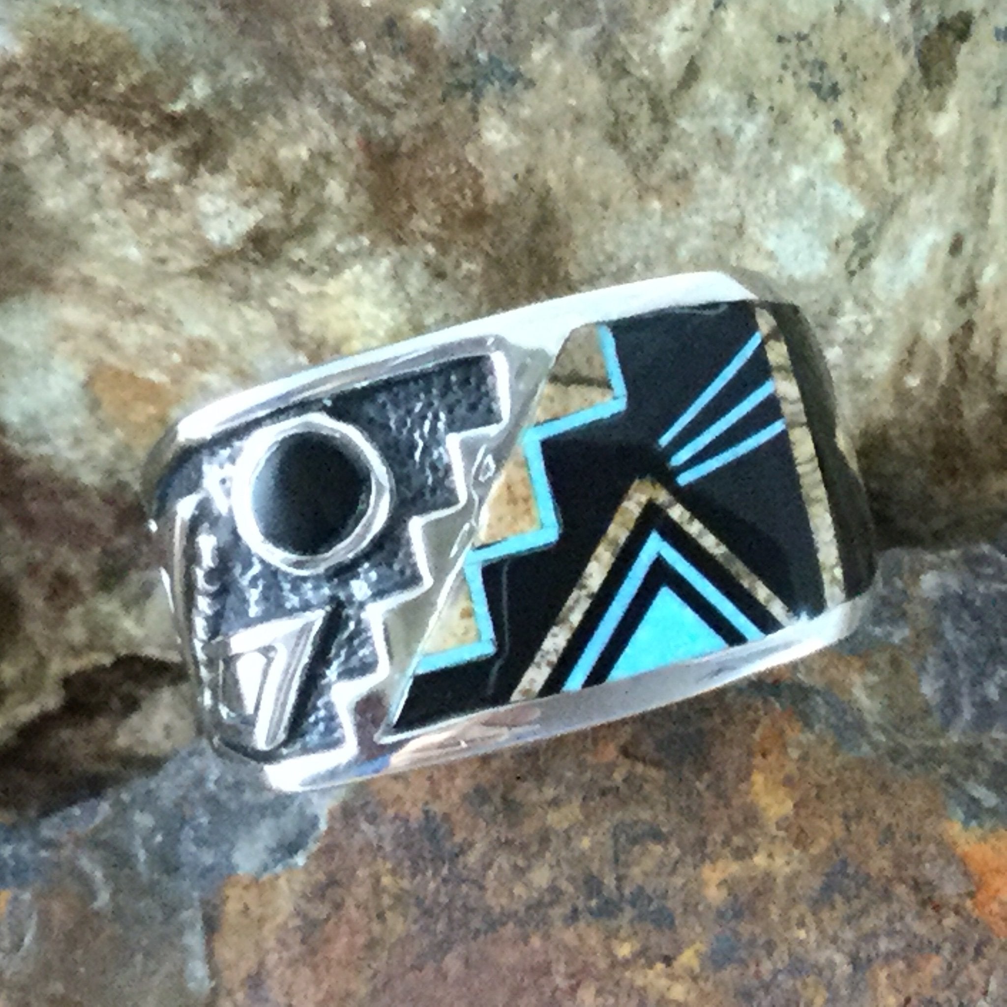 The ring is designed by David Rosales, one of the finest contemporary Southwest Artists in the world. He is the founder and co-owner of Supersmiths, Inc. of Gallup, NM.